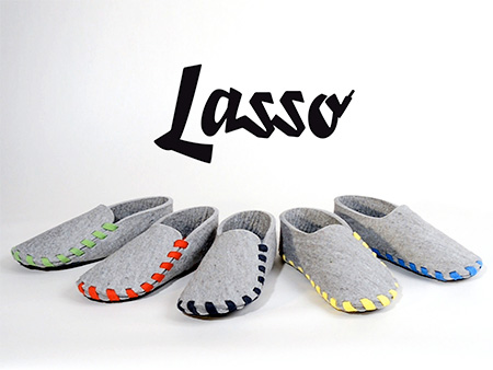 zanimljivosti Lasso Shoes Unknown 11:56 AM A+ A- Print Email Innovative flat packed shoes can be assembled and disassembled for easy storage and transportation.Comfortable lasso slippers made out of one-piece of wool felt, leather sole, and laced in the color of your choice. [more info]